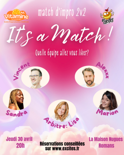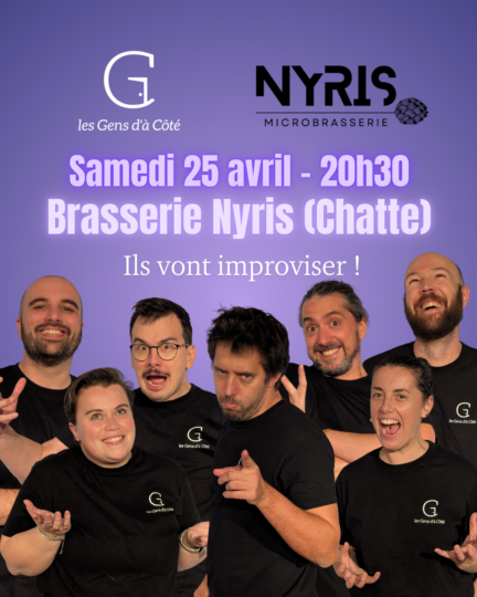 Actuellement au sein de deux compagnies de théâtre d’impro Les Excités et Les Gens d’à Côté, j’ai eu déjà l’occasion de faire une centaine de représentations sur la région Valence-Romans, et même au delà au Festival d’Avignon, à Lyon, Paris ou Grenoble.